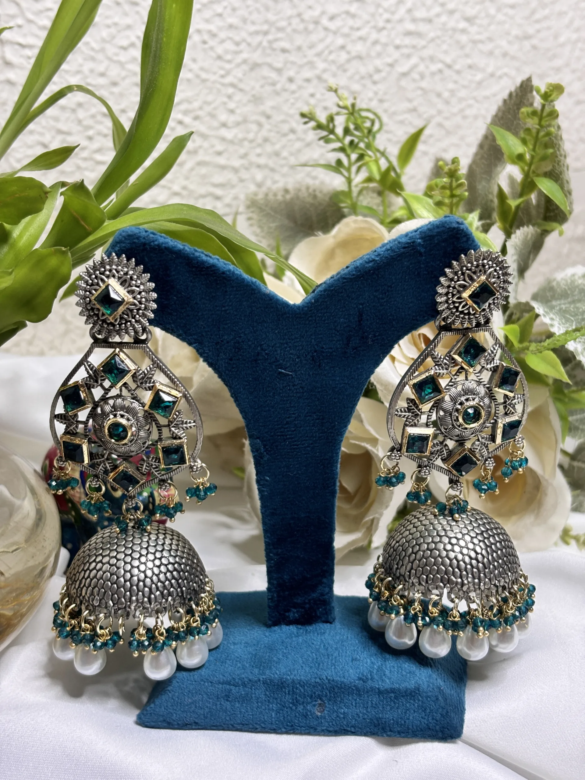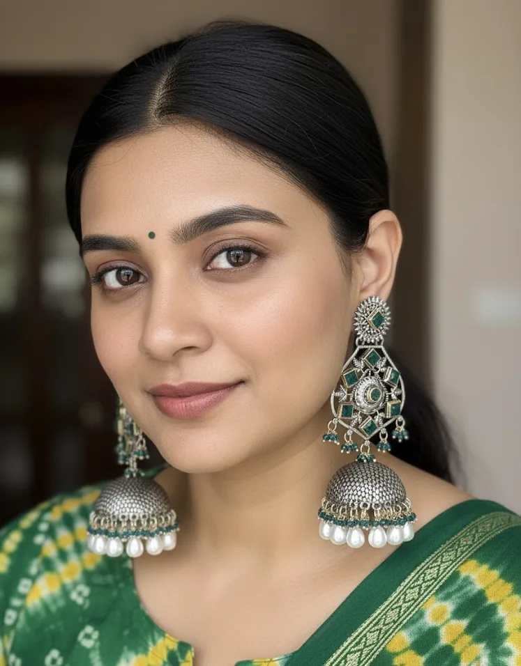 Elegant oxidised German silver earrings with a traditional touch, perfect to enhance your ethnic look.
