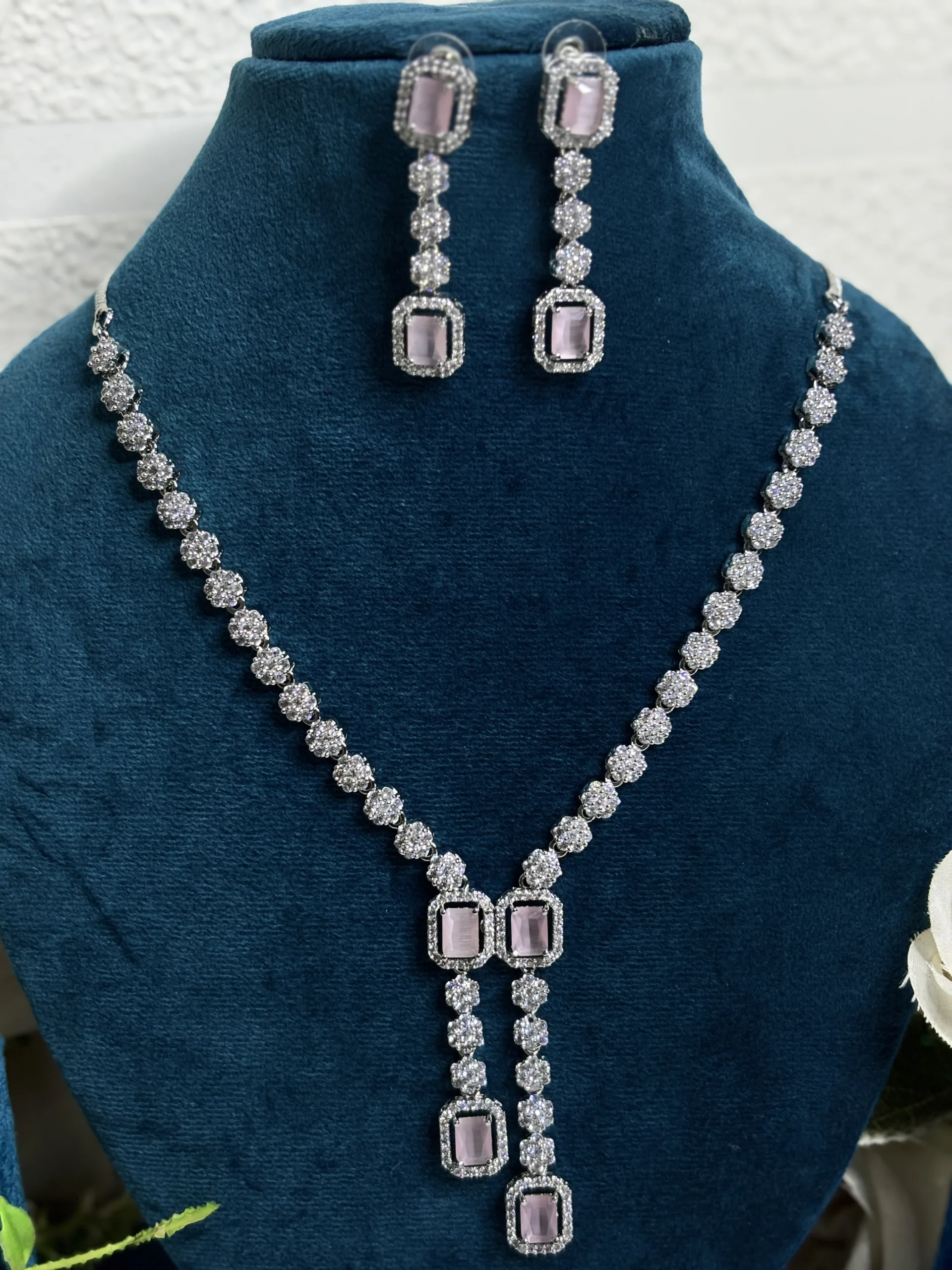 A delicate and stylish necklace set with finely cut stones, perfect for party wear, receptions, and gifting.