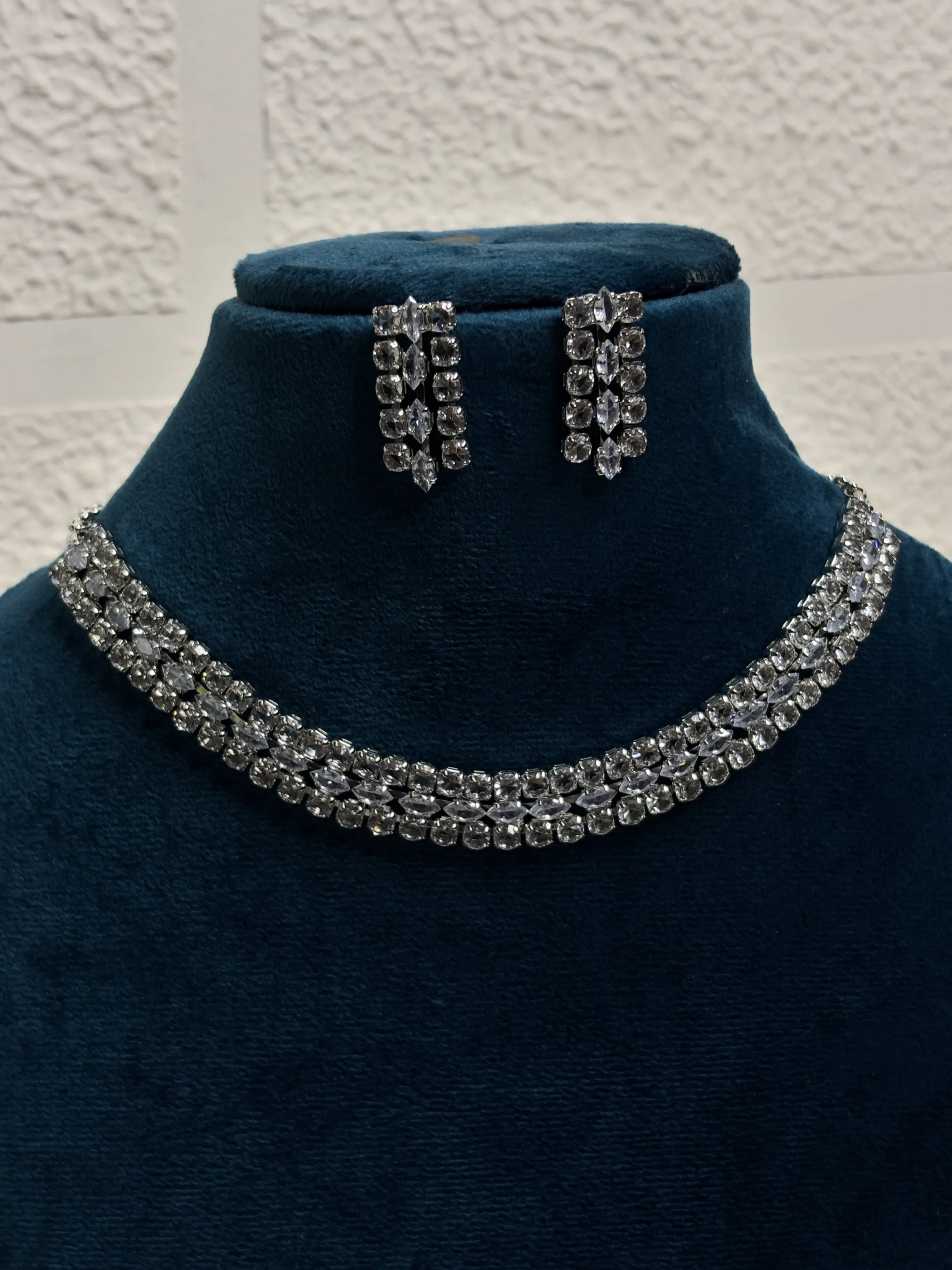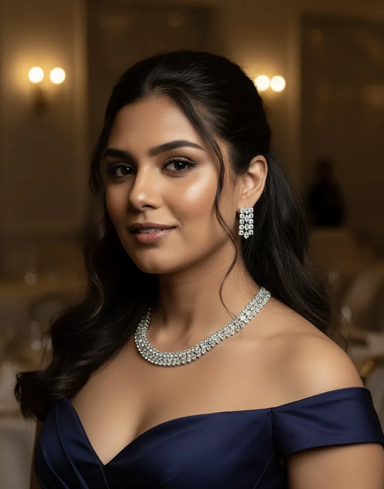 Triple-layer shine with matching earrings. Perfect for parties & weddings.