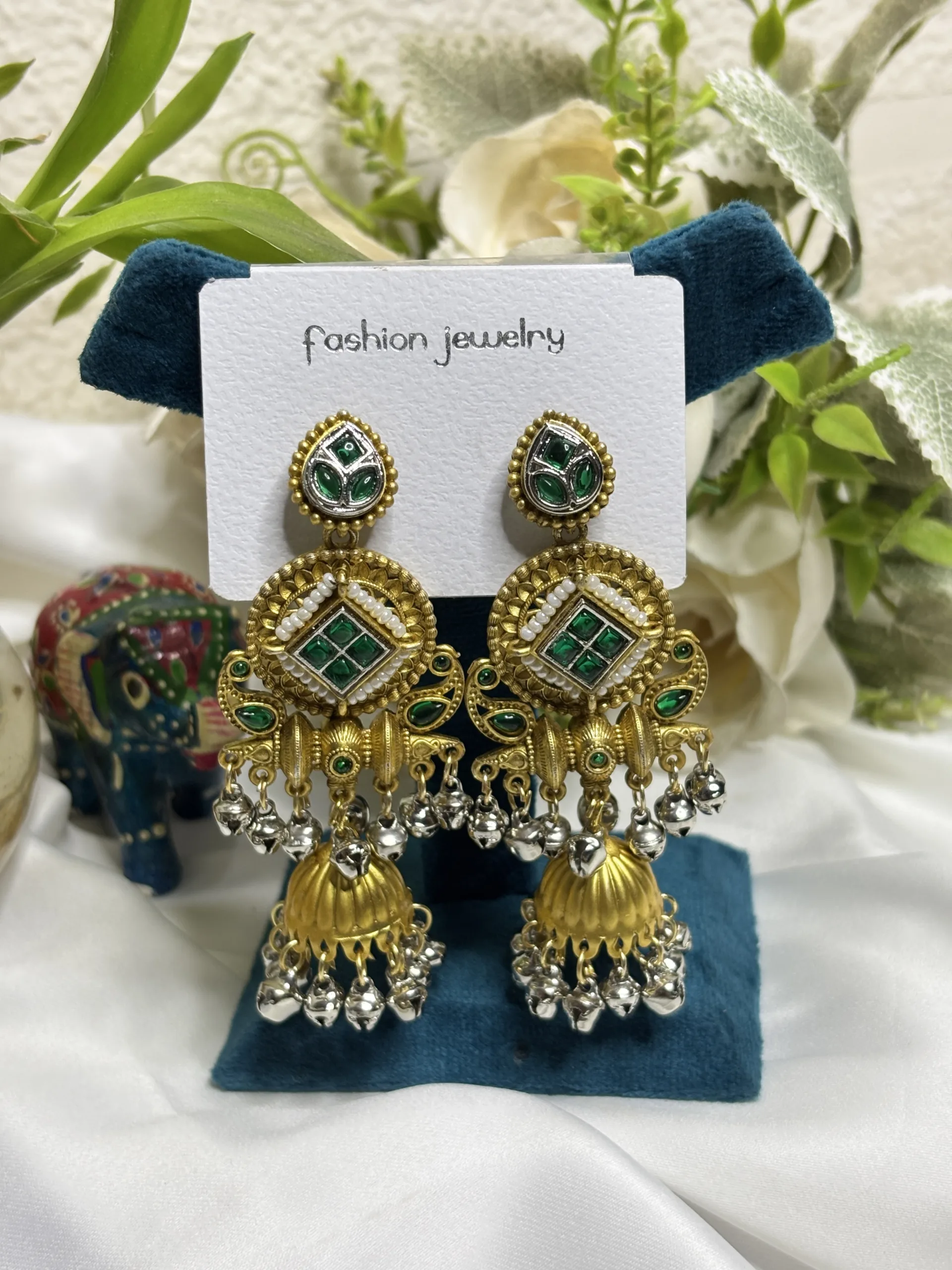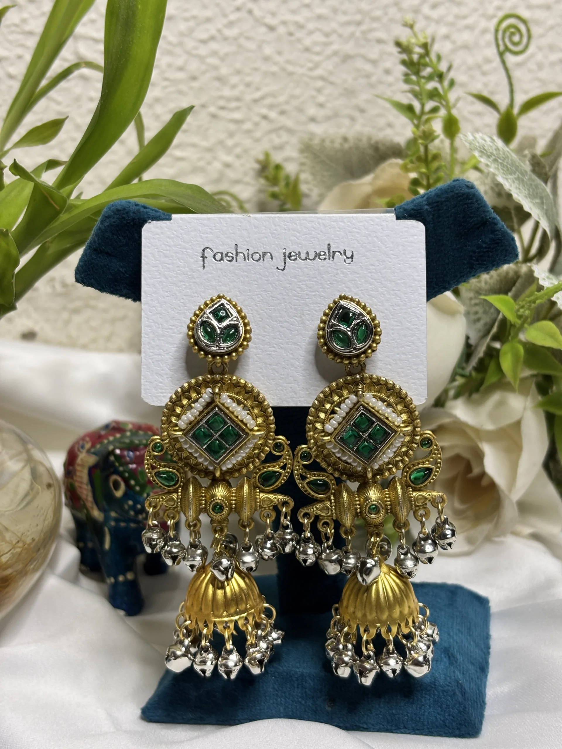Modern ethnic mix with green pearls – stylish yet traditional. 🌿